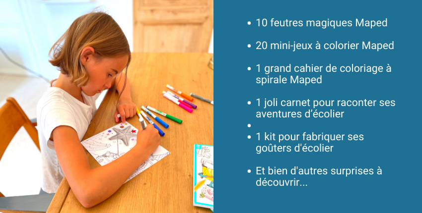 Pour cette nouvelle box, Kidibox s'est associé à Maped, la marque française des accessoires scolaires.